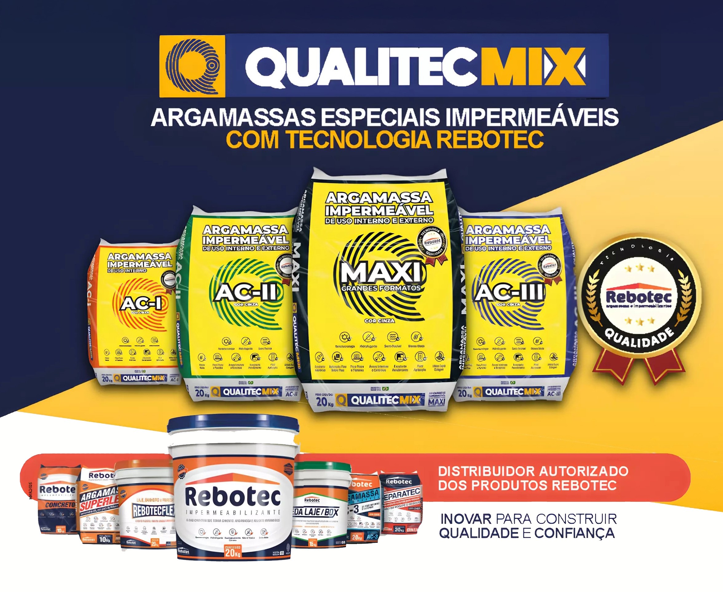 A QUALITEC MIX é uma empresa dedicada à fabricação de argamassa com qualidade superior, utilizando tecnologia avançada de hidrofragação e impermeabilização. Atuamos em todo estado de Mato Grosso, oferecendo um mix completo de produtos e soluções que garantem impermeabilização definitiva para sua construção. Nossa missão é proporcionar confiança e segurança aos nossos clientes, com um portfólio diversificado que atende diversas necessidades.