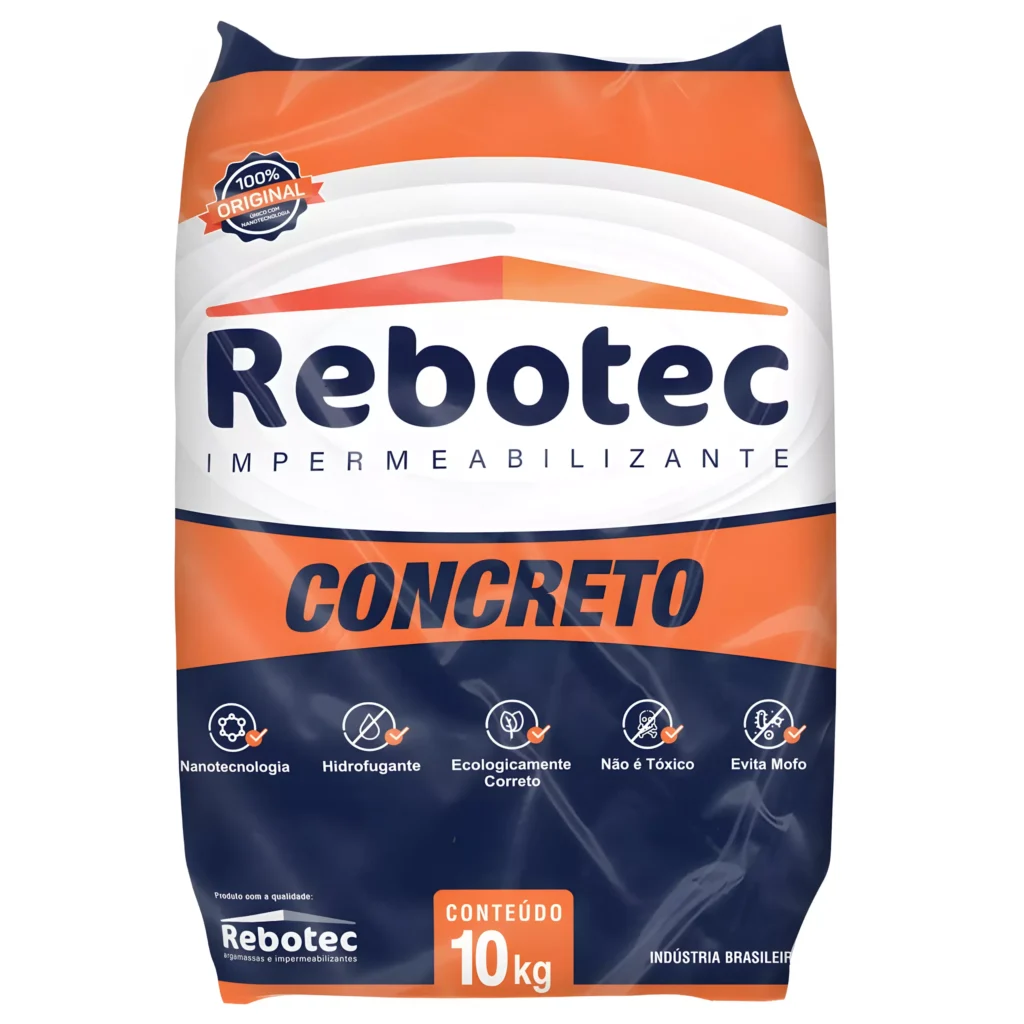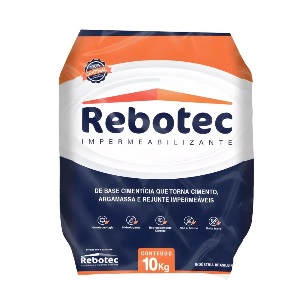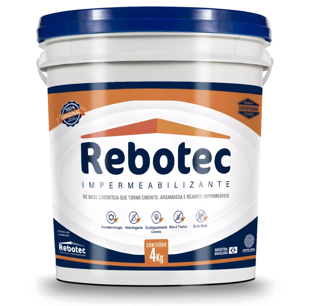 Mesma performance da linha Rebotec em embalagem de 4 kg, ideal para reparos e pequenas obras. Impermeabiliza cimento, argamassa e rejunte com nanotecnologia e ação hidrofugante. Produto ecologicamente correto, não tóxico e auxiliar no combate ao mofo.
